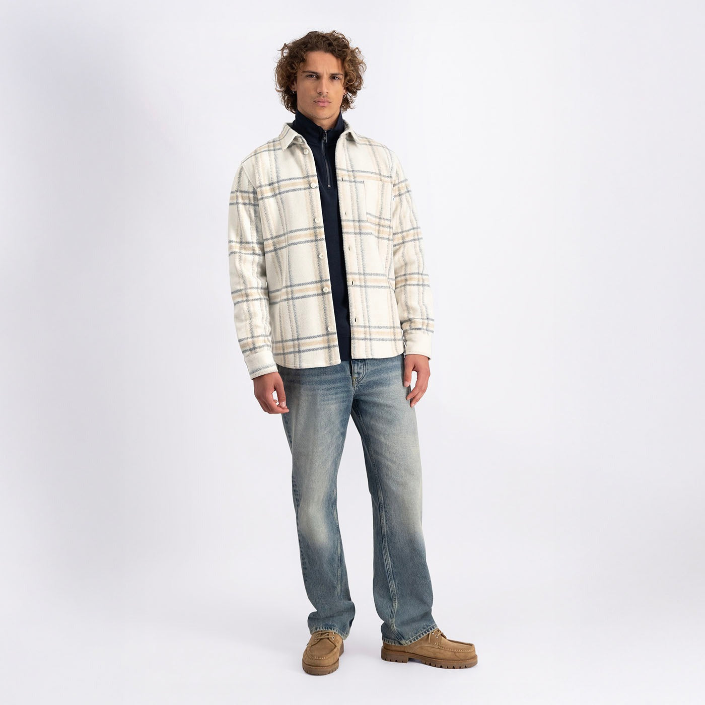 Het crèmekleurige overshirt van Law of the Sea is een stijlvolle en karaktervolle overshirt met een geborsteld, gebreid ruitpatroon. Gemaakt van een stevige 320 gsm polyesterstructuur, combineert dit shirt een opvallende look met degelijke kwaliteit. De ton-sur-ton briljante knopen en de French placket voegen subtiele verfijning toe, terwijl de borstzak praktische functionaliteit biedt.