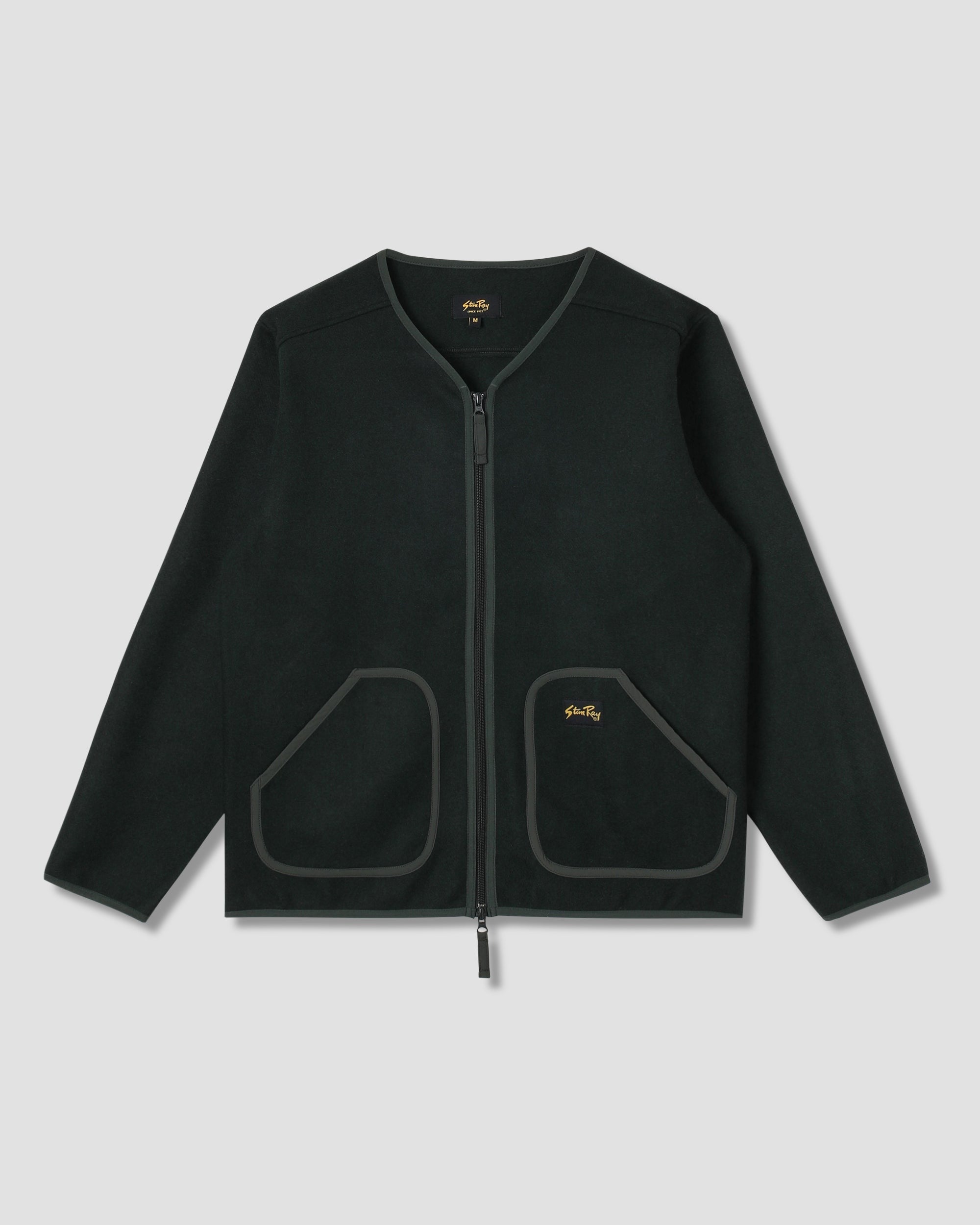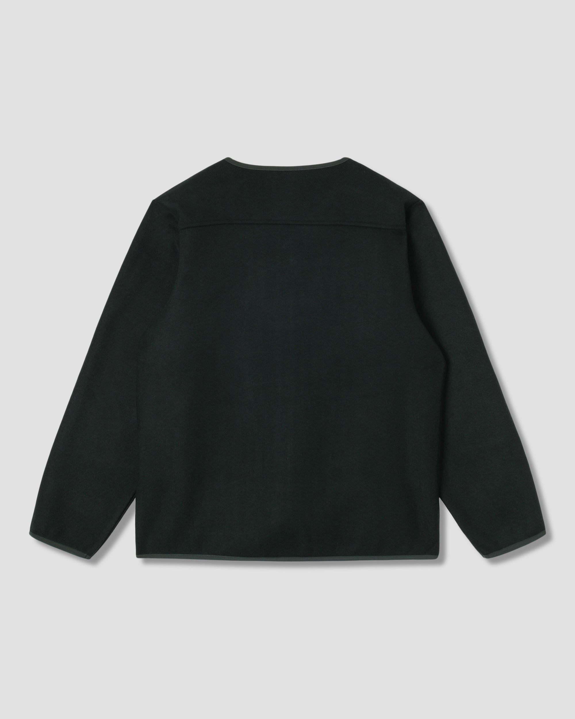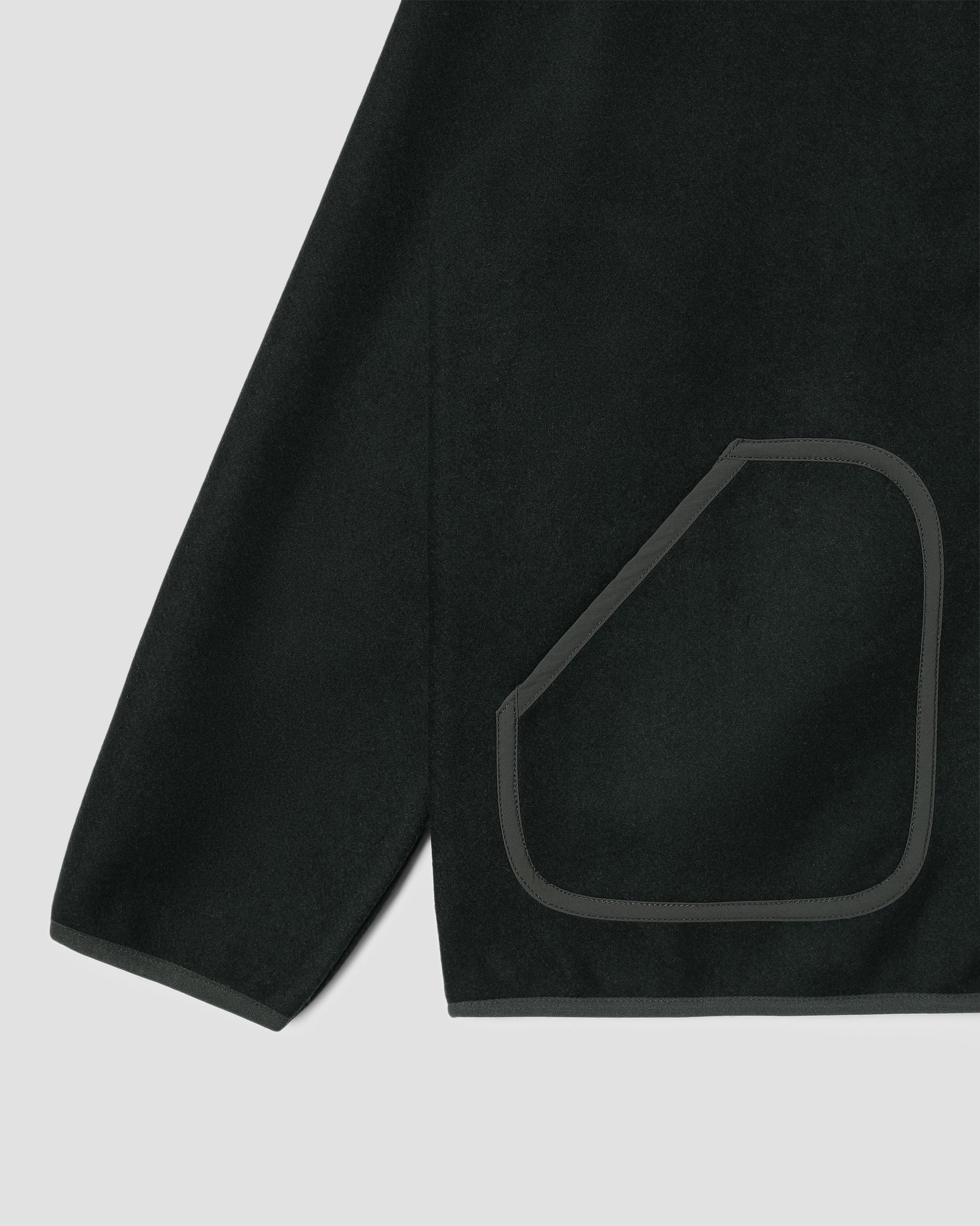 Een groen duurzaam en praktisch vest gemaakt van een wol-fleecemix met een boxy fit.