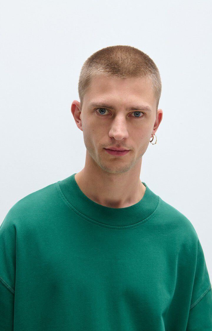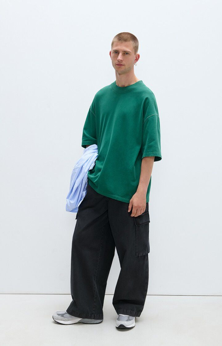 Een groen T-shirt met korte mouwen en een ronde hals. Het shirt is gemaakt van 100% zacht katoen, wat ultiem comfort biedt. Het heeft een effen patroon en een losvallende pasvorm.