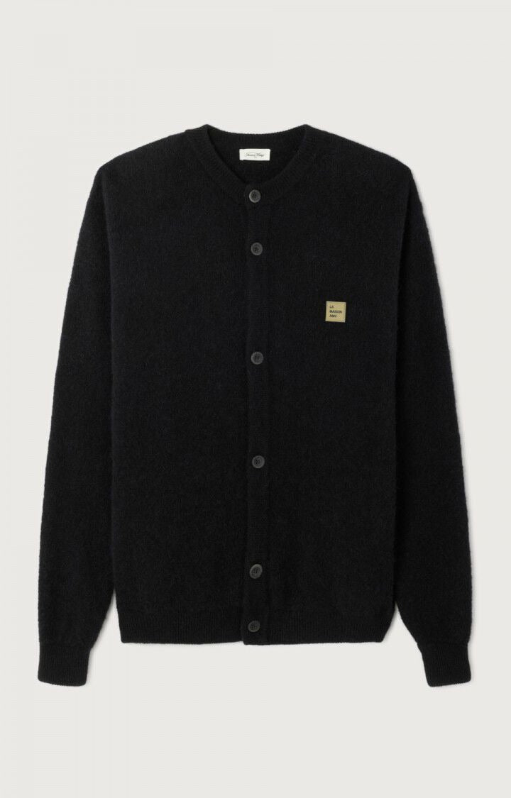 Een zwart vest met lange mouwen, een ronde hals en een knoopsluiting. Het vest is gemaakt van een zachte mix van wol, alpaca en elastaan, wat zorgt voor warmte, comfort en een lichte, luchtige feel. Het heeft een elegante, maar eigentijdse look.