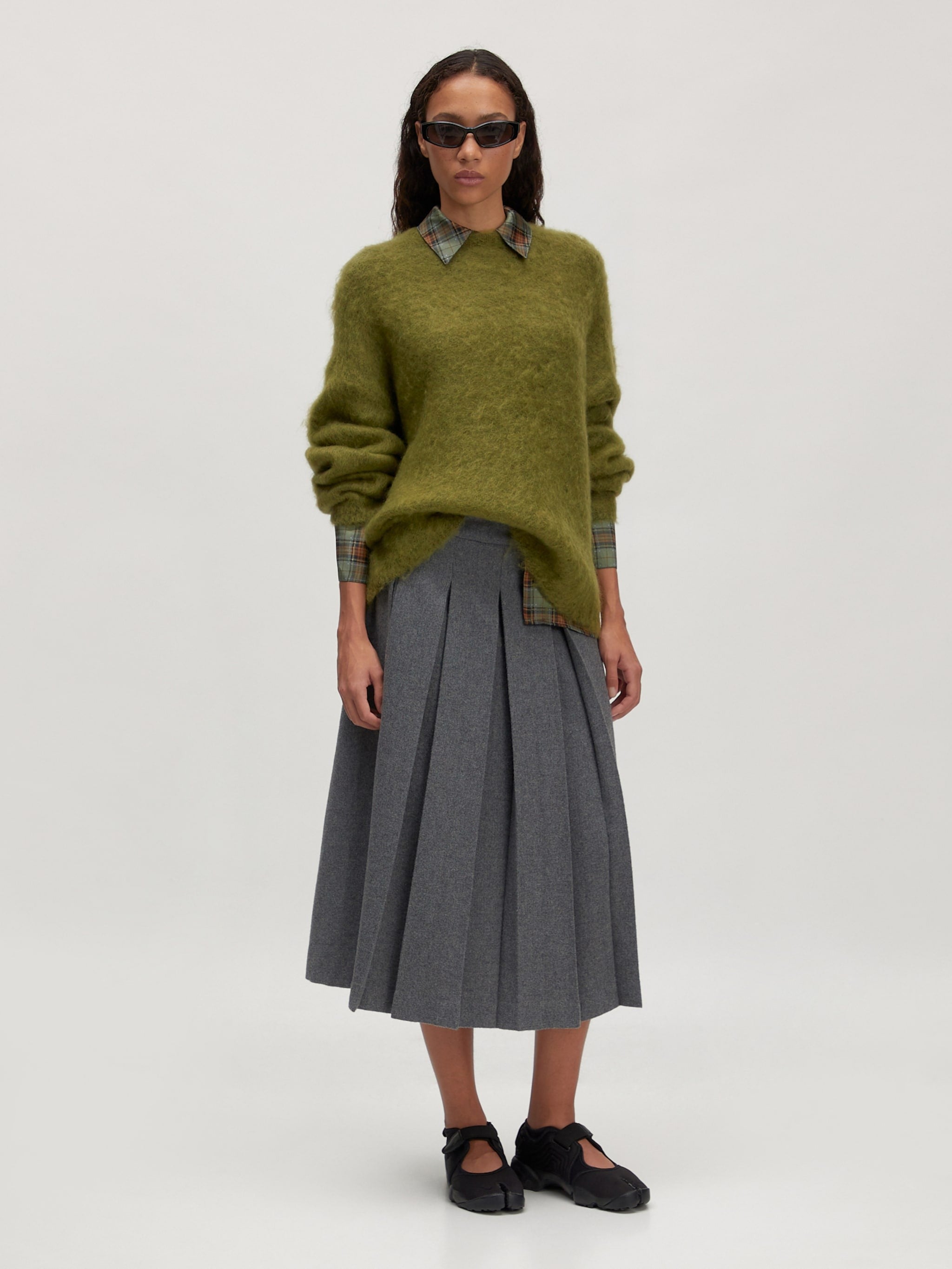 Een groene trui met lange mouwen en een normale pasvorm. De trui is gemaakt van een mix van materialen, waaronder mohairwol en wol.