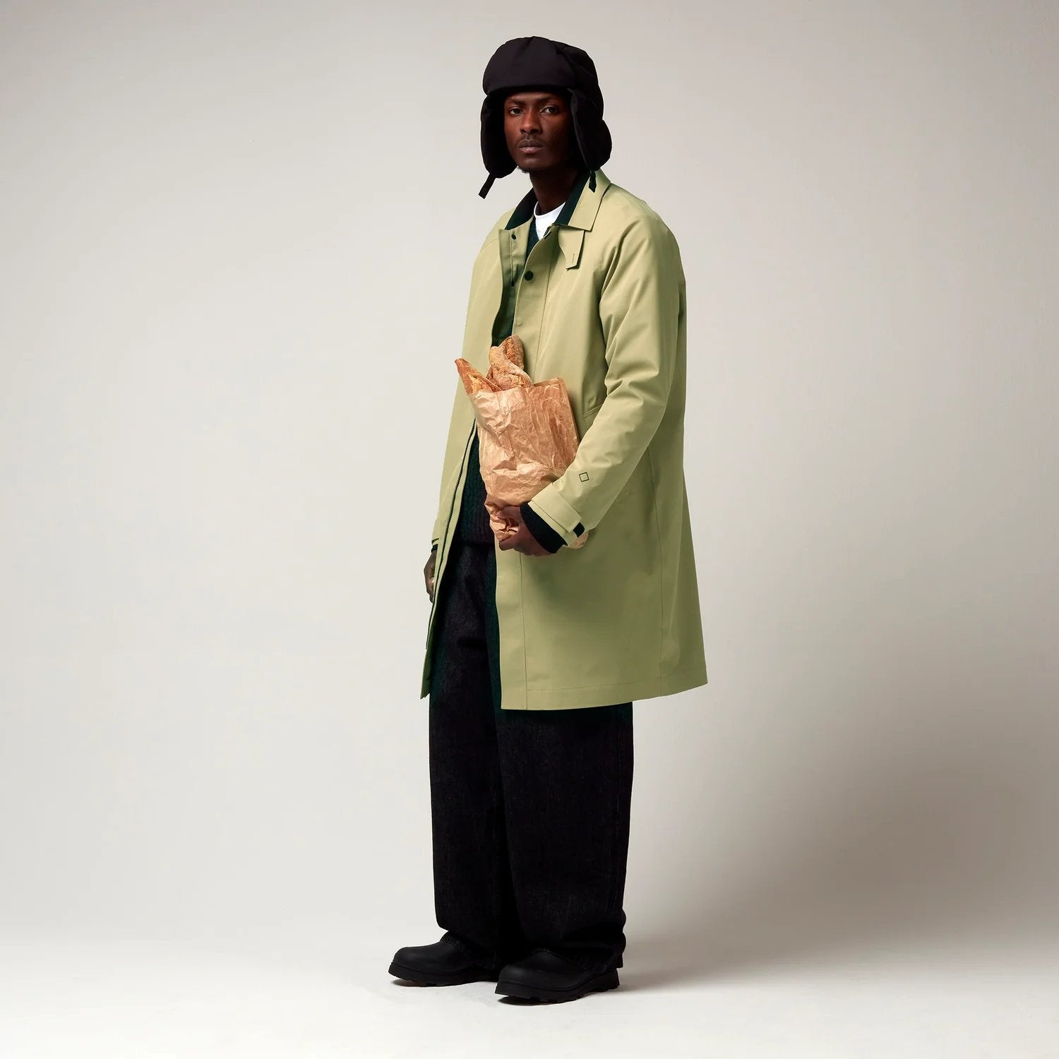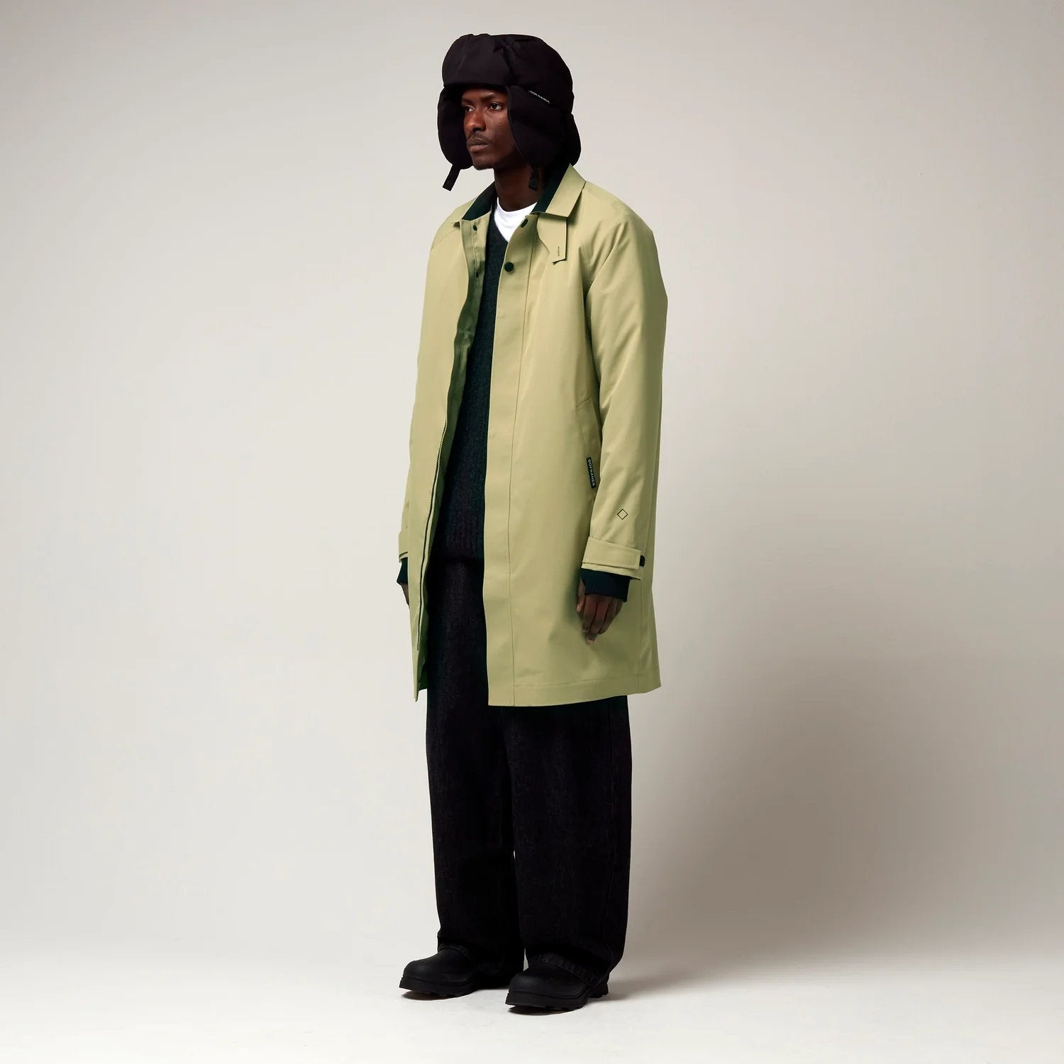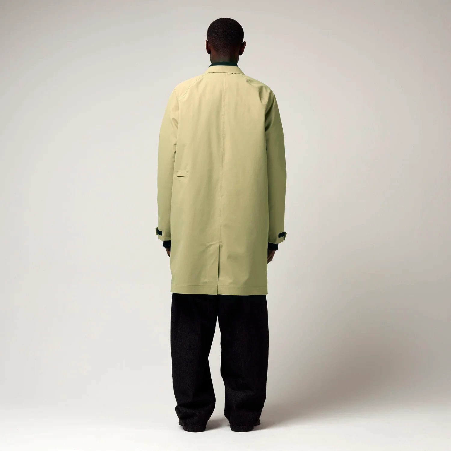 Een groen kleurige klassieke jas met een frisse twist. Deze opvallende jas combineert een traditioneel silhouet met eigentijdse details. De contrasterende kraag en de omkeerbare kinband voegen een vleugje kleur toe aan de stijl.