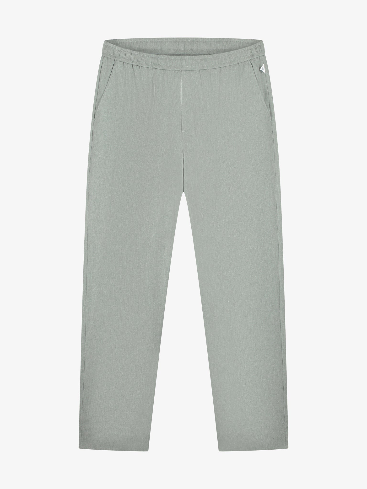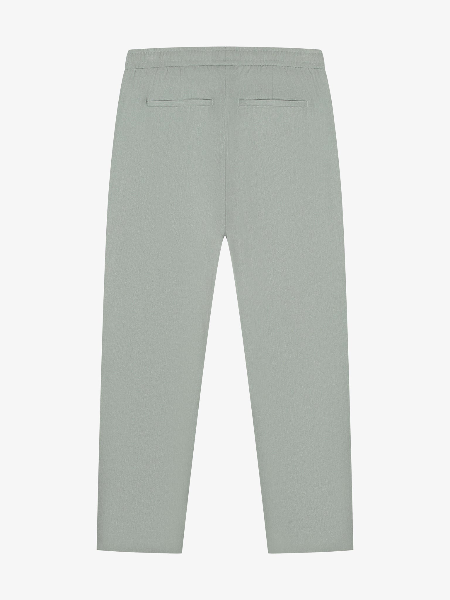 Een groene, stijlvolle pantalon voor heren die de perfecte balans biedt tussen een formele en een moderne uitstraling. Deze broek is gemaakt van een hoogwaardige twill melange stof, wat zorgt voor een subtiele kleurdiepte en een verfijnde textuur. Dankzij de toevoeging van viscose en spandex voelt de pantalon zacht aan en biedt deze een prettige stretch voor optimaal draaggemak gedurende de dag. Het ontwerp is afgewerkt met klassieke paspelzakken aan de achterzijde, waardoor de broek zowel voor zakelijke als voor smart-casual gelegenheden een uitstekende keuze is.