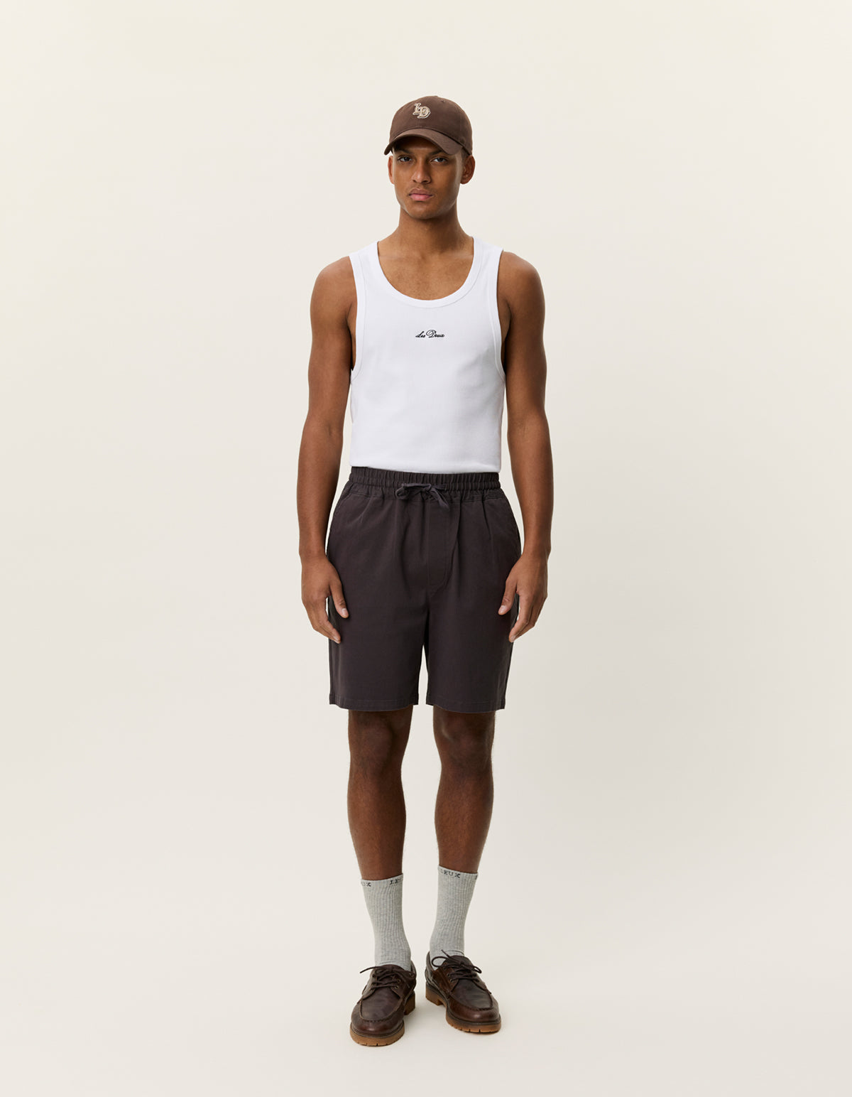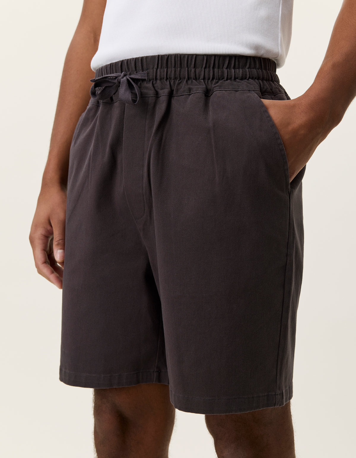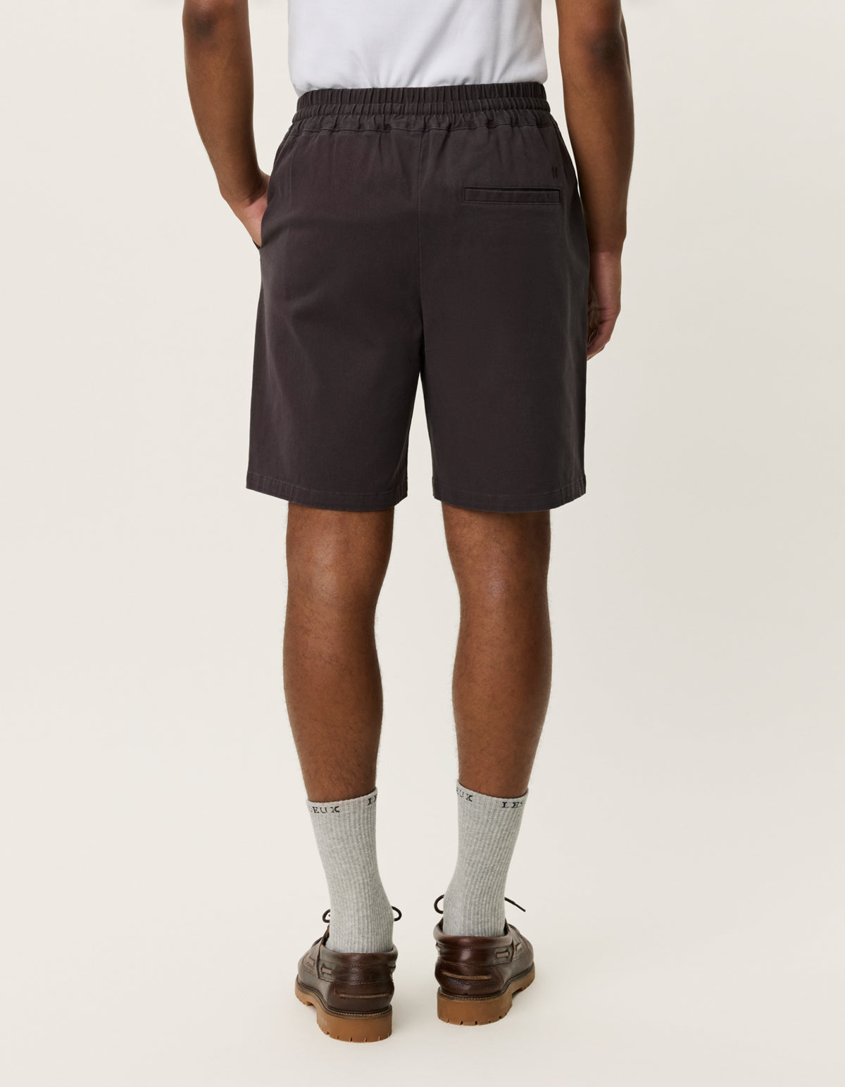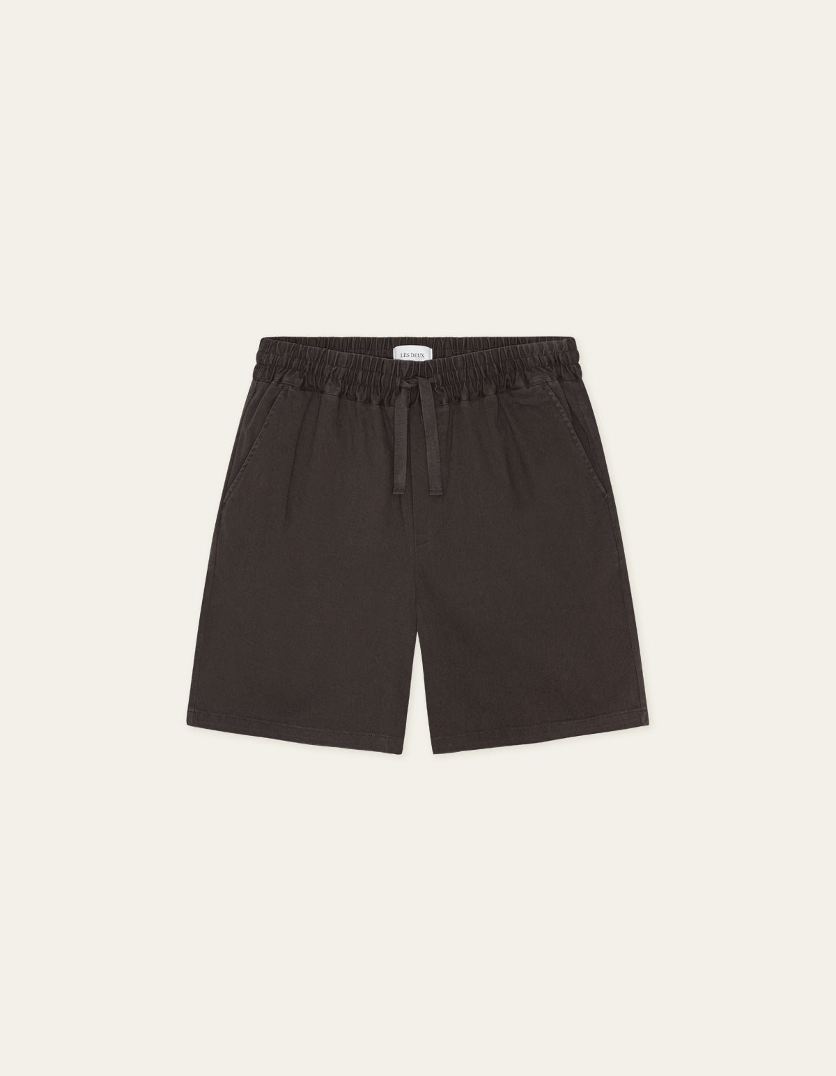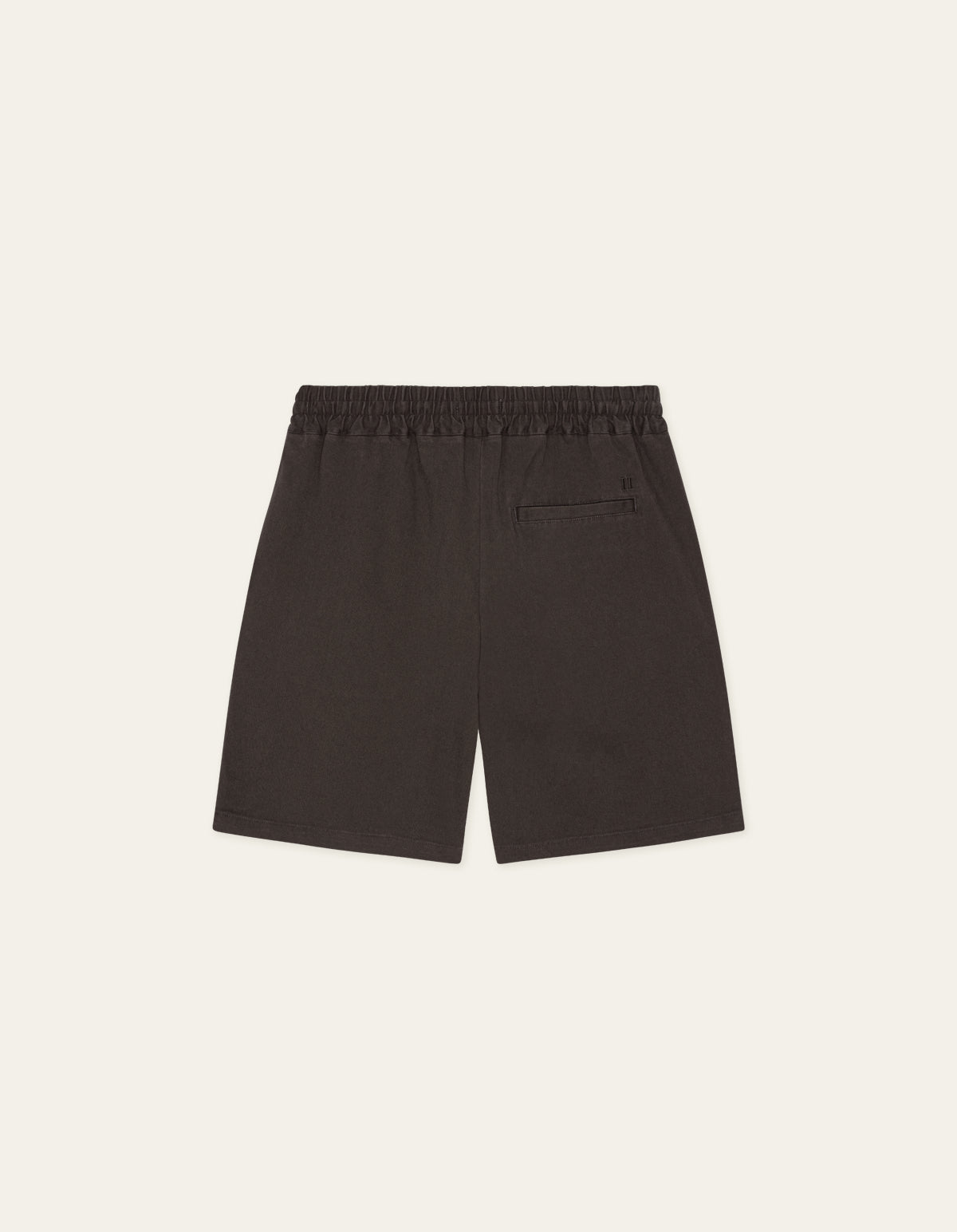 Deze bruine shorts hebben een regular fit en zijn gemaakt van een hoogwaardige katoenmix met een subtiele wafelstructuur, wat zorgt voor een luchtig gevoel en een moderne textuur. De elastische tailleband met trekkoord biedt maximaal draagcomfort en een perfecte pasvorm voor dagelijks gebruik. Met hun diepzwarte kleur en minimalistische afwerking zijn deze shorts moeiteloos te combineren met een casual T-shirt of een licht linnen overhemd.