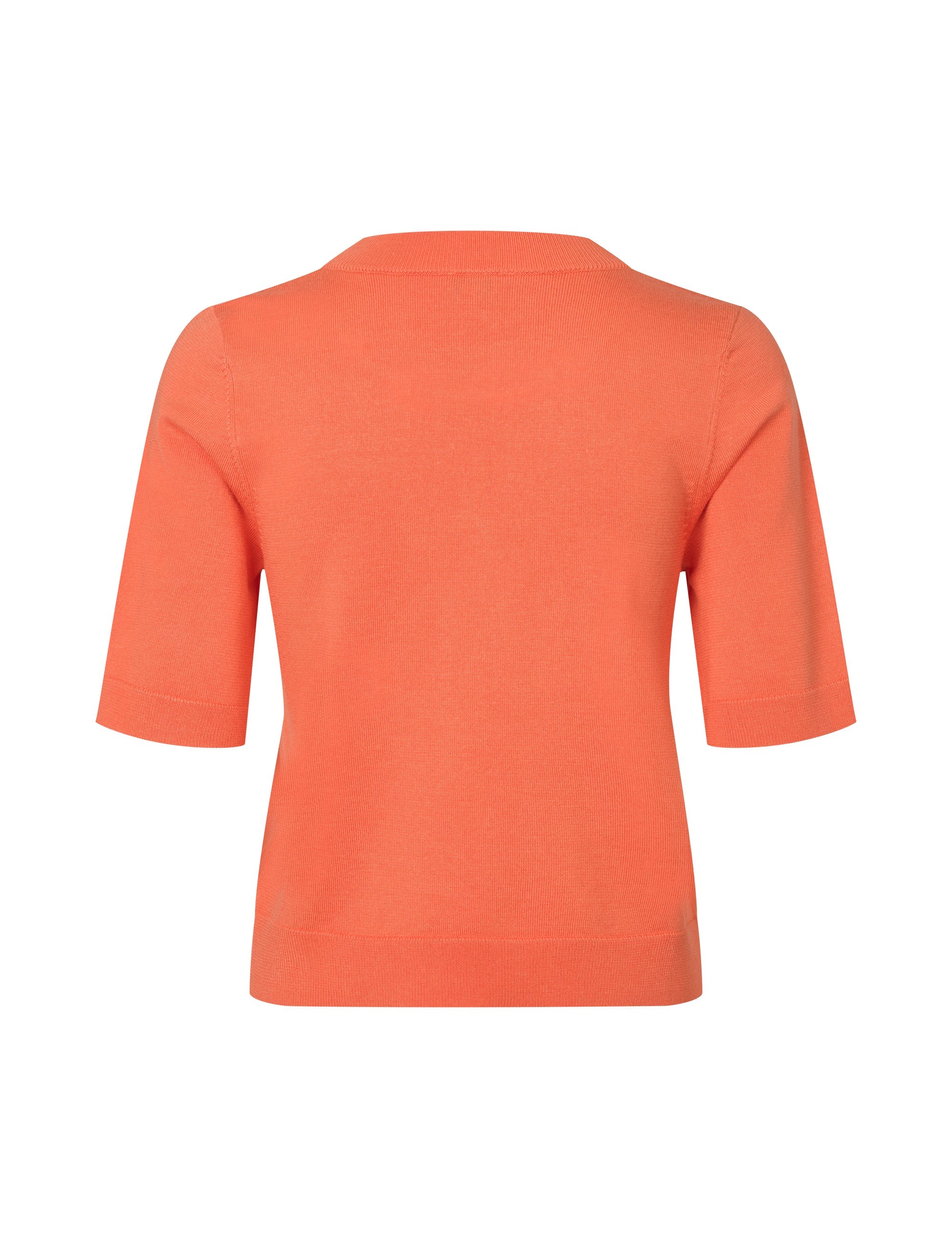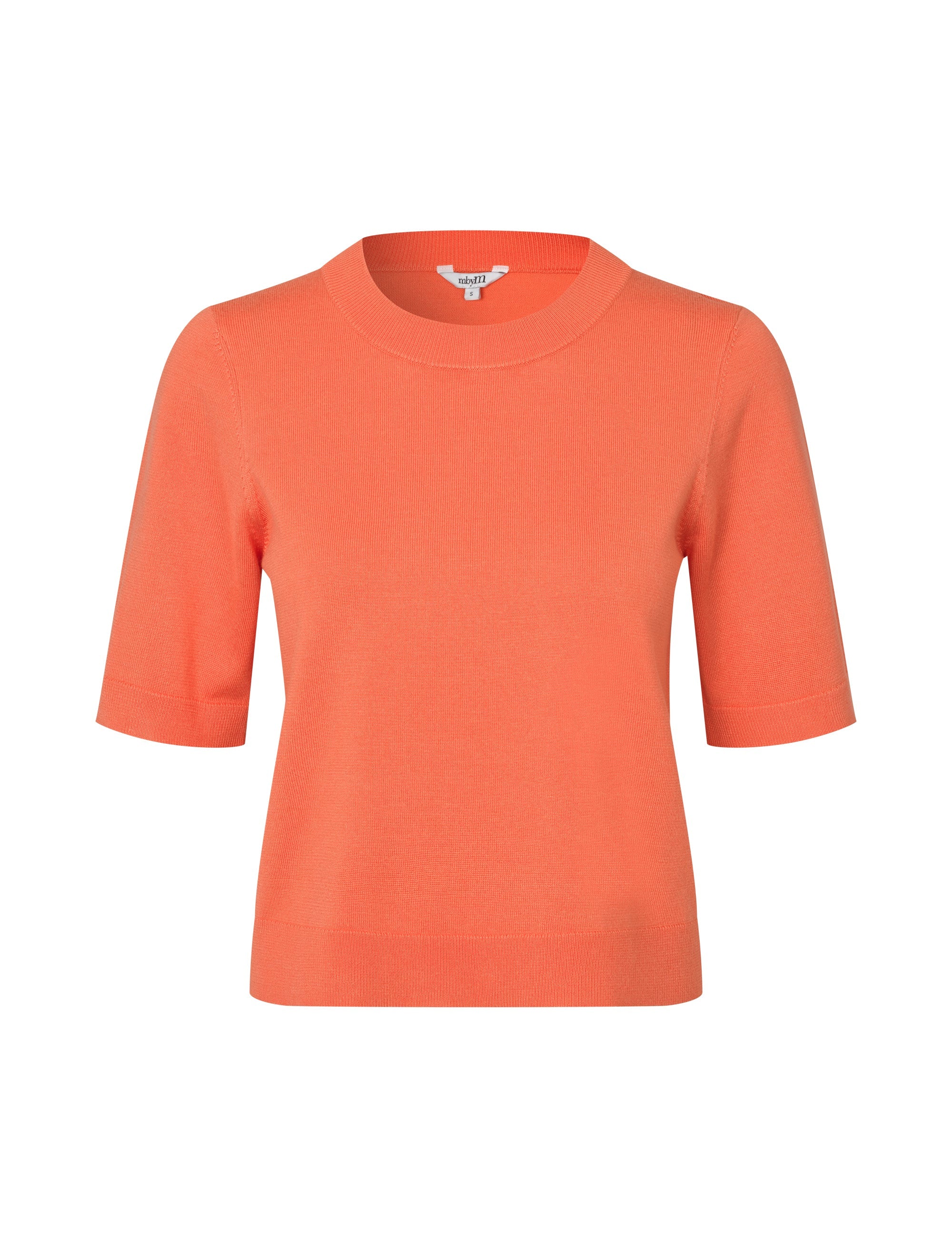 De oranjekleurige top van MbyM is een zachte, gebreide top met korte mouwen en een ronde hals. Dankzij de relaxte pasvorm en geribbelde details is dit een comfortabele en stijlvolle basic voor dagelijks gebruik.
