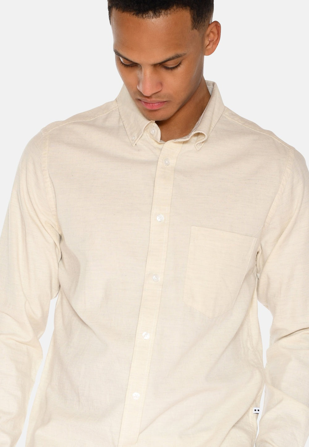 Een creme kleurig klassiek overhemd van 100% katoen dat comfort combineert met een tijdloze stijl. De klassieke pasvorm zorgt voor een strak en verzorgd silhouet. Het shirt is voorzien van klassieke details zoals een kraag, knoopsluiting en een borstzak, wat het ontwerp stijlvol en functioneel maakt.