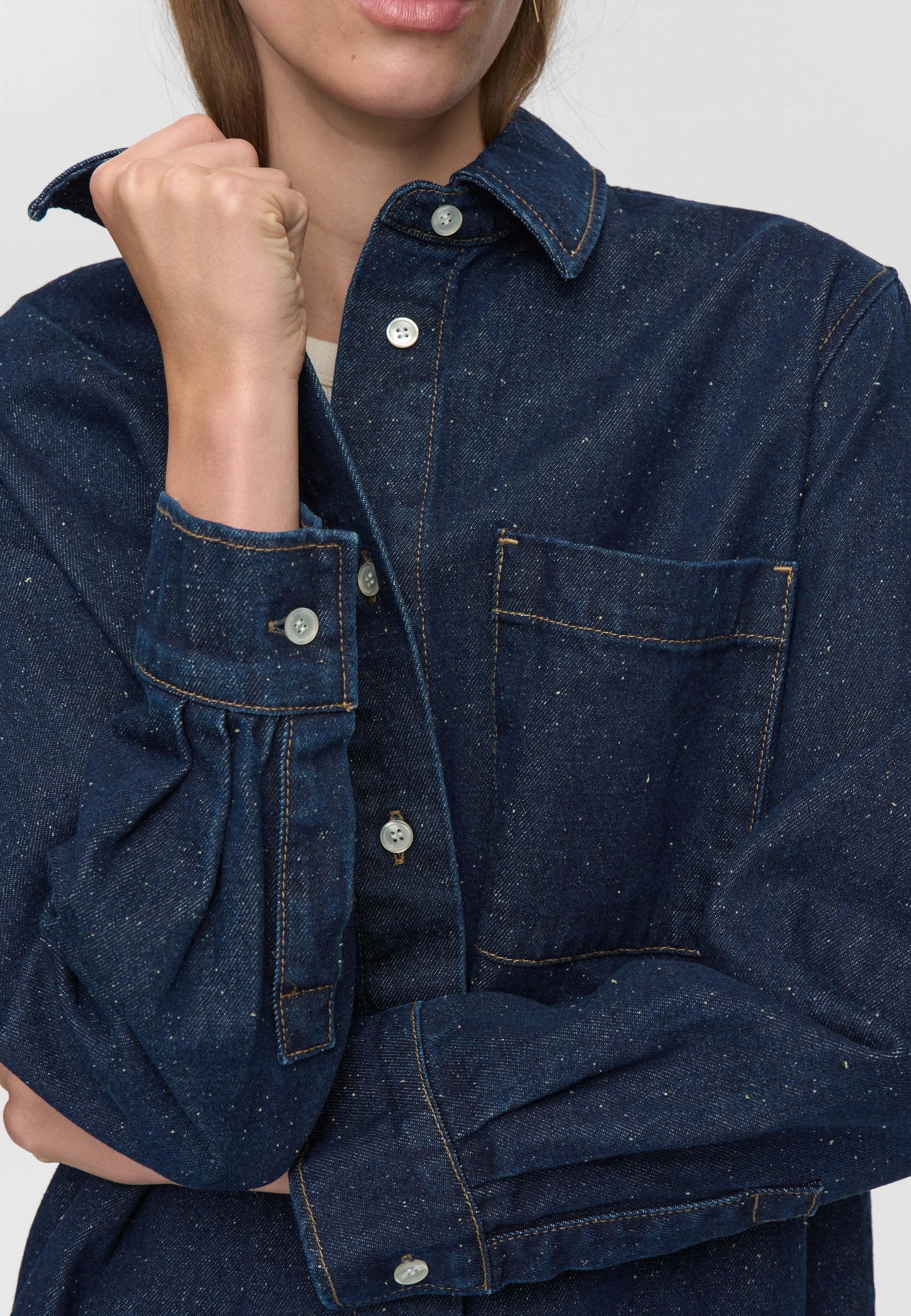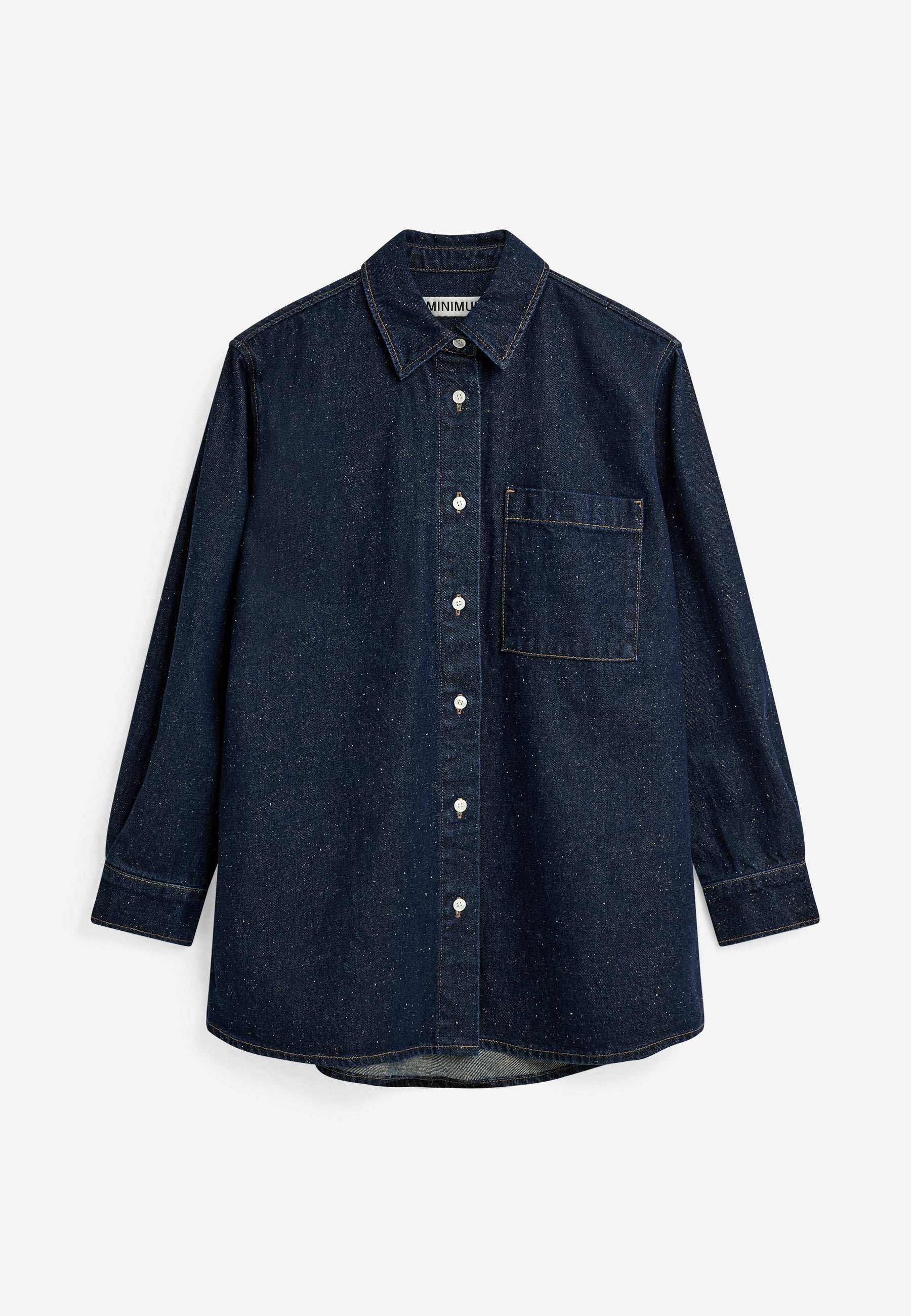 Het denim blouse van Minimum is een relaxed fit overhemd met een stoere maar verfijnde uitstraling. Het overhemd is gemaakt van een gestructureerde donkere denimstof van 100% katoen, wat zorgt voor een stevige maar comfortabele feel. De subtiele textuur geeft het item extra karakter, terwijl de parelmoerlook knopen zorgen voor een stijlvolle finishing touch. Perfect om casual te dragen met jeans of als lichte overshirt over een T-shirt.