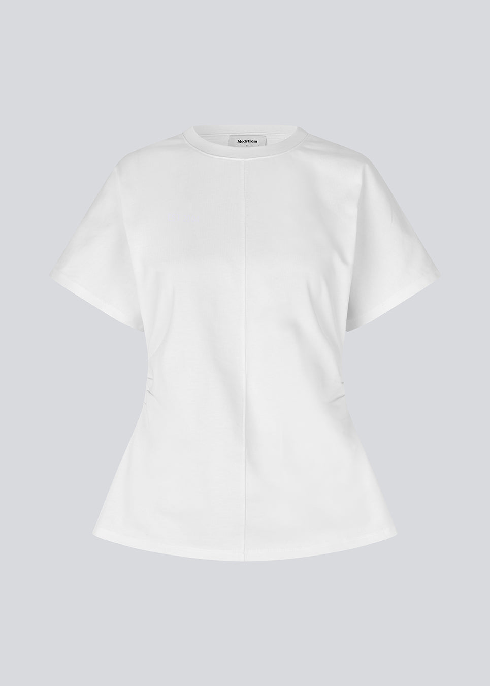 Dit witte nauwsluitende T-shirt is gemaakt van een zachte jersey van 100% biologisch katoen, wat zorgt voor een hoog draagcomfort en een ademend gevoel op de huid. Het ontwerp kenmerkt zich door een klassieke ronde hals en korte mouwen, maar onderscheidt zich door de subtiele ruches in de zijnaad. Deze details geven het shirt een speels effect en een flatterende pasvorm die het silhouet mooi accentueert.