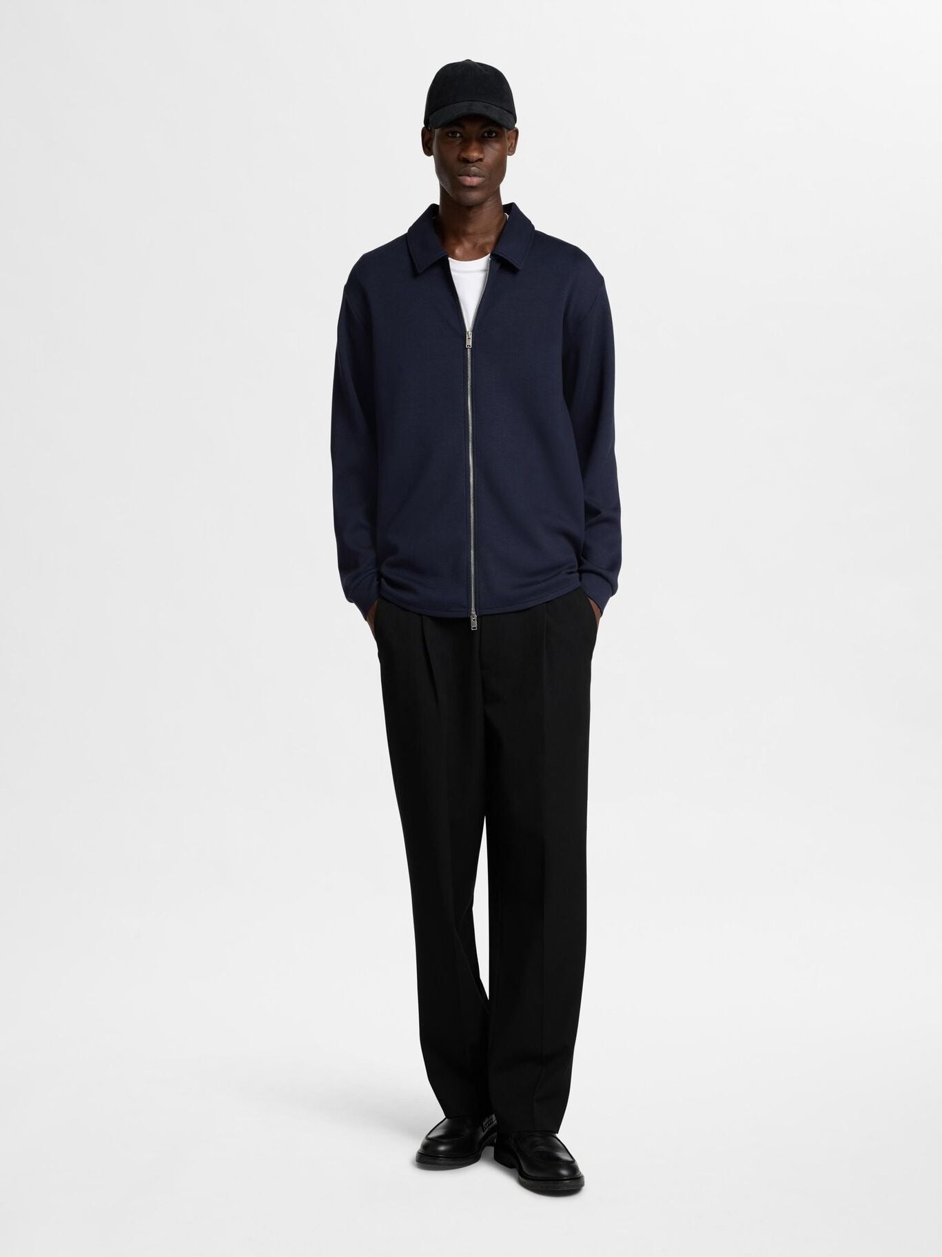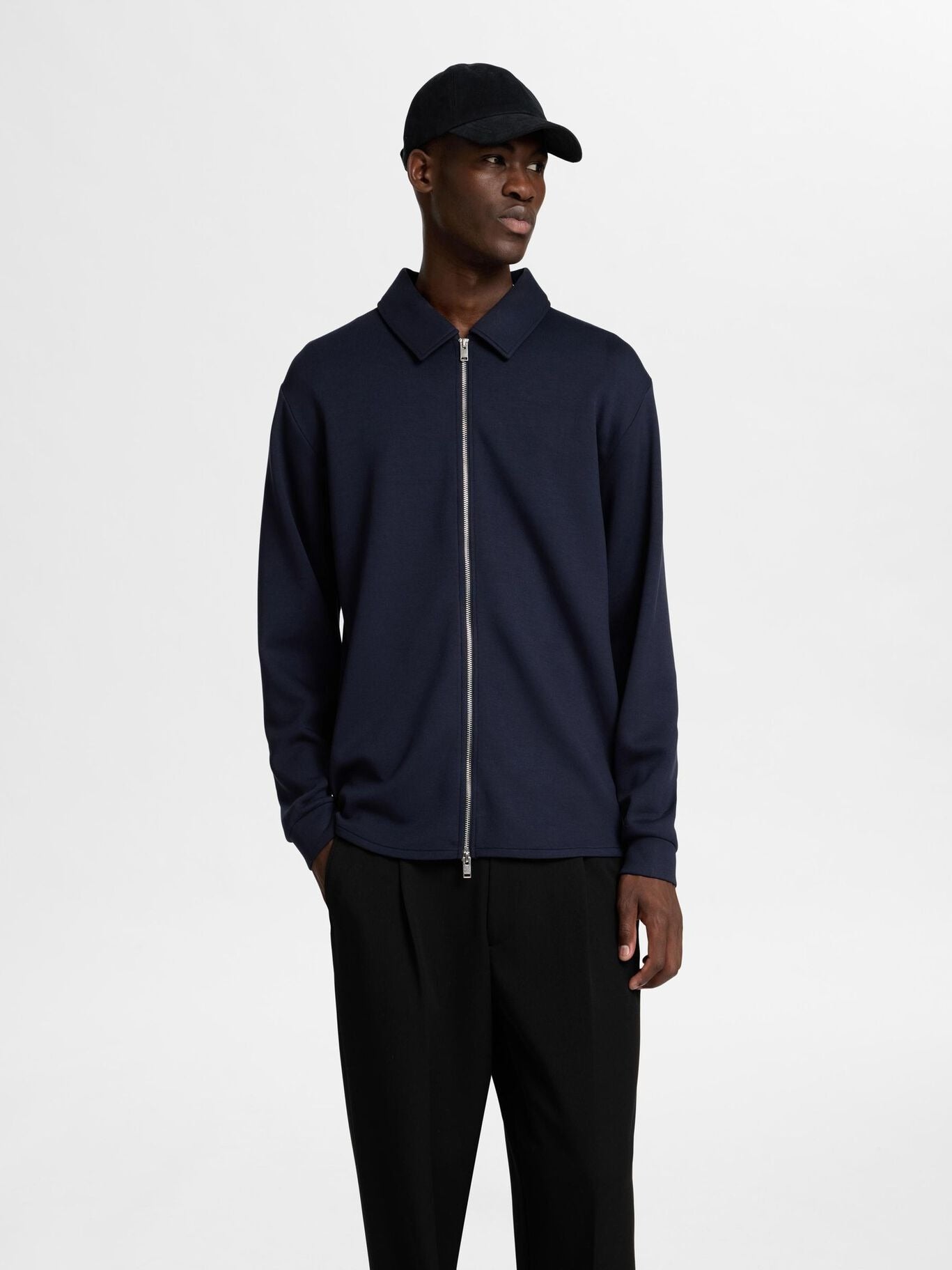 Het donkerblauwe vest combineert loungewear comfort met een tailored look. Dit vest met rits is gemaakt van zacht, sweatachtig materiaal en heeft een handige 2-way ritssluiting, zodat je het op verschillende manieren kunt dragen. Het is voorzien van een gewone kraag en lange mouwen met aansluitende manchetten, en biedt een regular fit. Combineer het met een donkere jeans, een gestreept T-shirt en leren loafers voor een complete look.